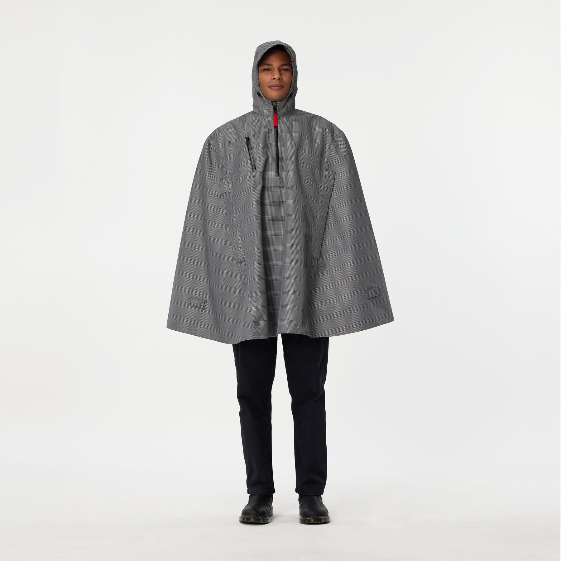 A rainy day complicates your already complex life, this cape turns it into a stylish statement about your love of design and an urban-minded lifestyle. Like an elder statesperson this cape has more experience, more style and more to offer than the younger lightweight Rover Rain Cape. It is more substantial, almost two times heavier. It has much more reflectivity, catching the eye of not just the design minded but demanding the attention of oncoming headlights. Our heritage fabric patterns are brilliantly woven with 3m high quality reflective yarns, making it a truly standout choice for dark day and night travel. It also has magnetic arm openings that close with an authoritative automatic snap.